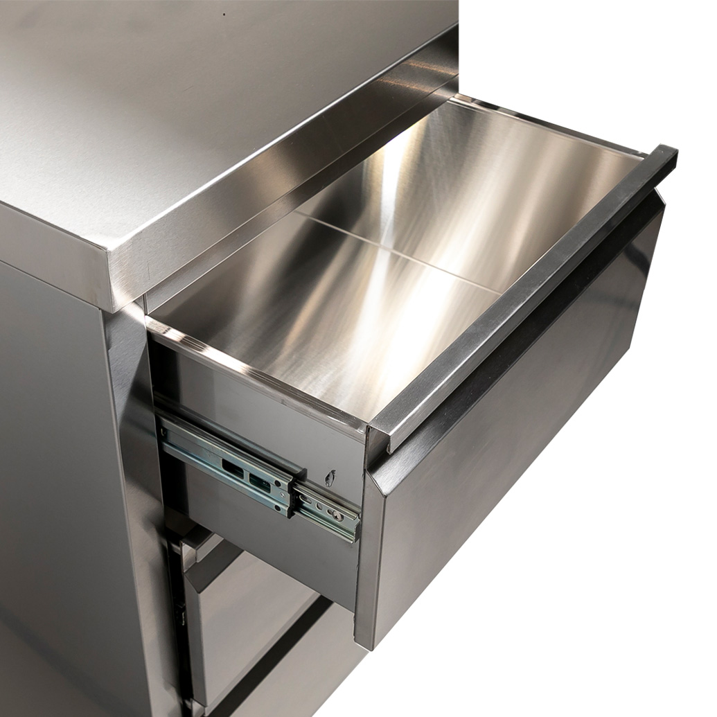 1.2mm Thick food grade 304 stainless work top, with reinforced lining