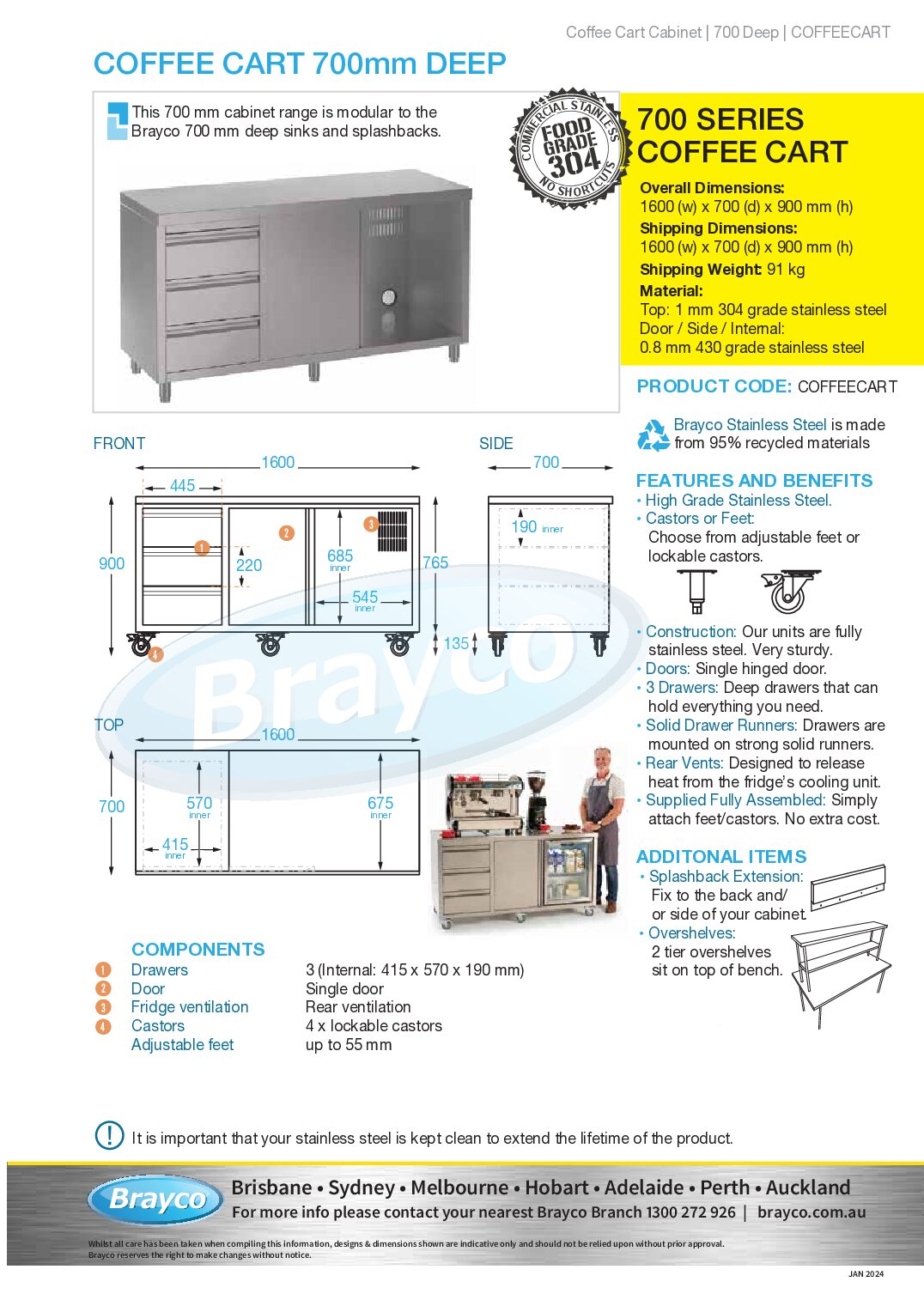Click here to download our latest Brayco Catalogue and view the extensive range of stainless steel cabinets, sinks and benches along with a large range of shelving options.