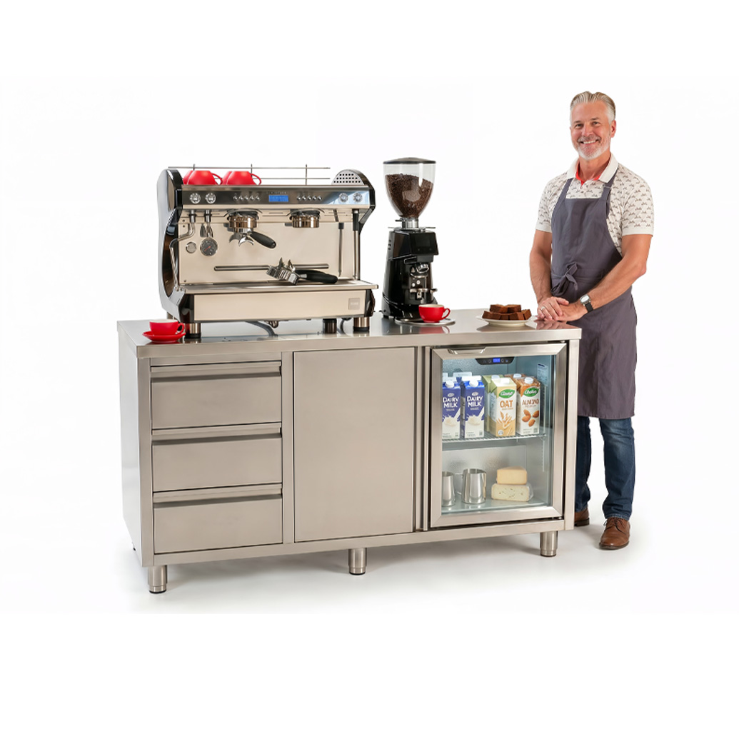 Stainless Steel Coffee Cart – Coffee Machine Ready, 1600 x 700 x 900mm high.