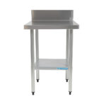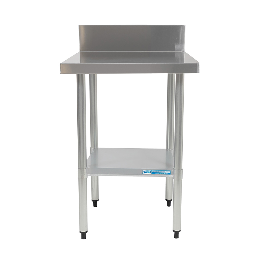 Economy 430 grade stainless bench, with splashback, undershelf and adjustable feet.