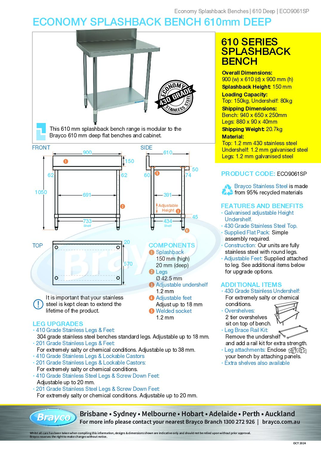 Click here to download our latest Brayco catalogue and view the extensive range of stainless steel cabinets, sinks and benches along with a large range of shelving options.