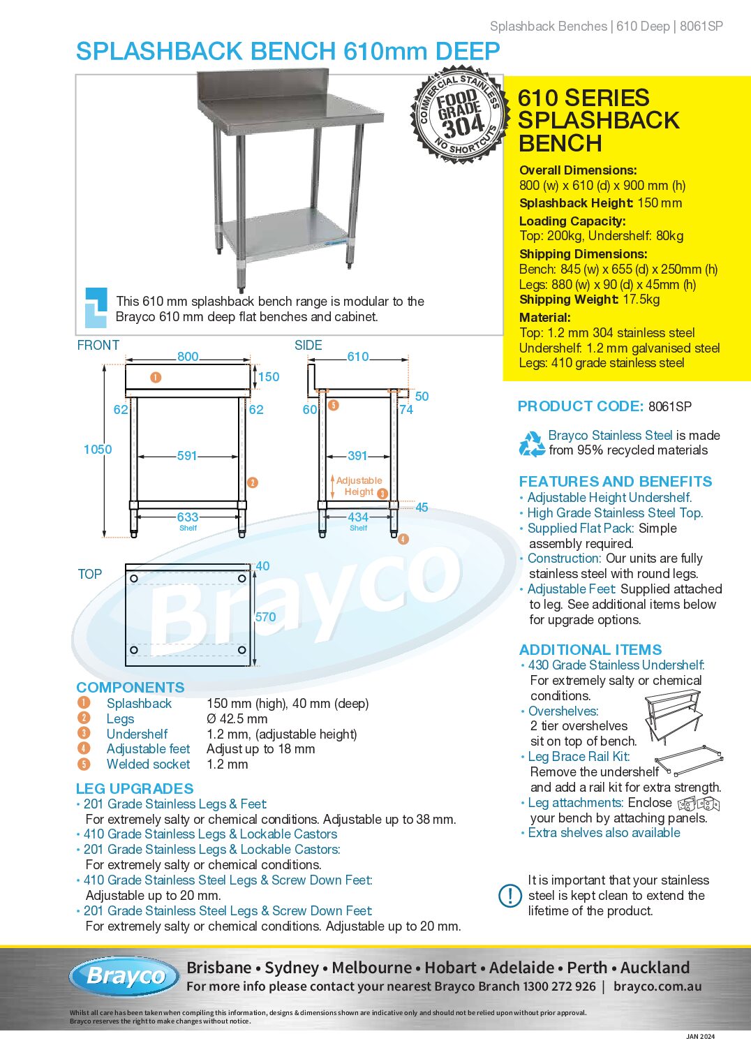 Click here to download our latest Brayco catalogue and view the extensive range of stainless steel cabinets, sinks and benches along with a large range of shelving options.